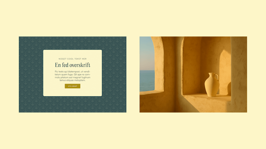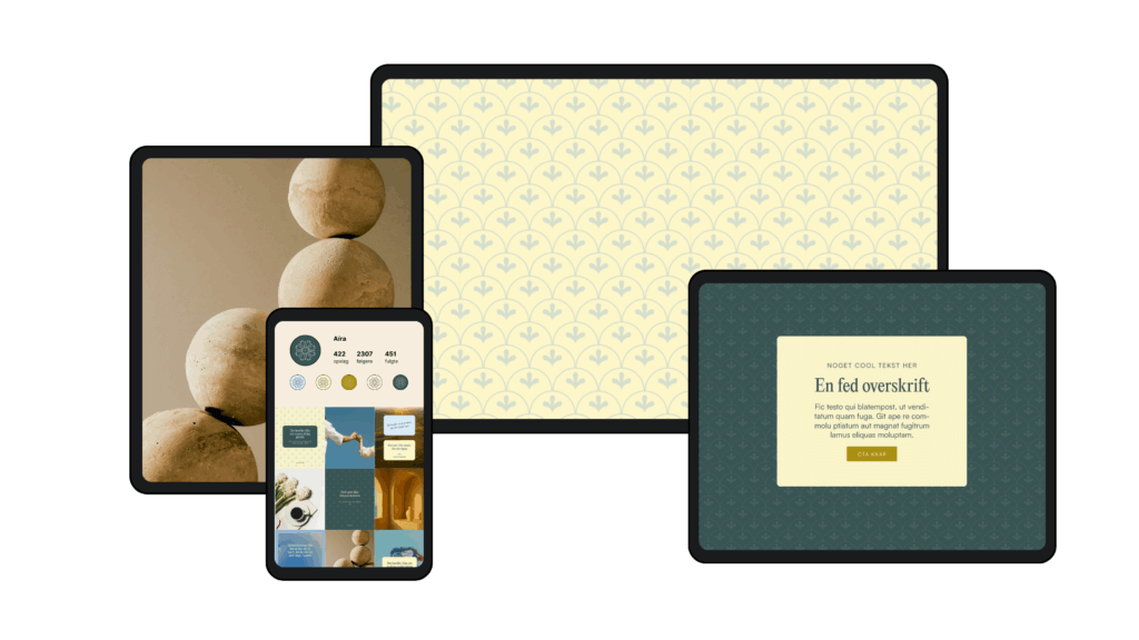 Designet inkluderer en blanding af gratis og betalte billeder – udvalgt for at matche brandets visuelle stil bedst muligt. I nogle tilfælde kan der være ekstra omkostninger, hvis der vælges billeder, der kræver licens eller betaling.