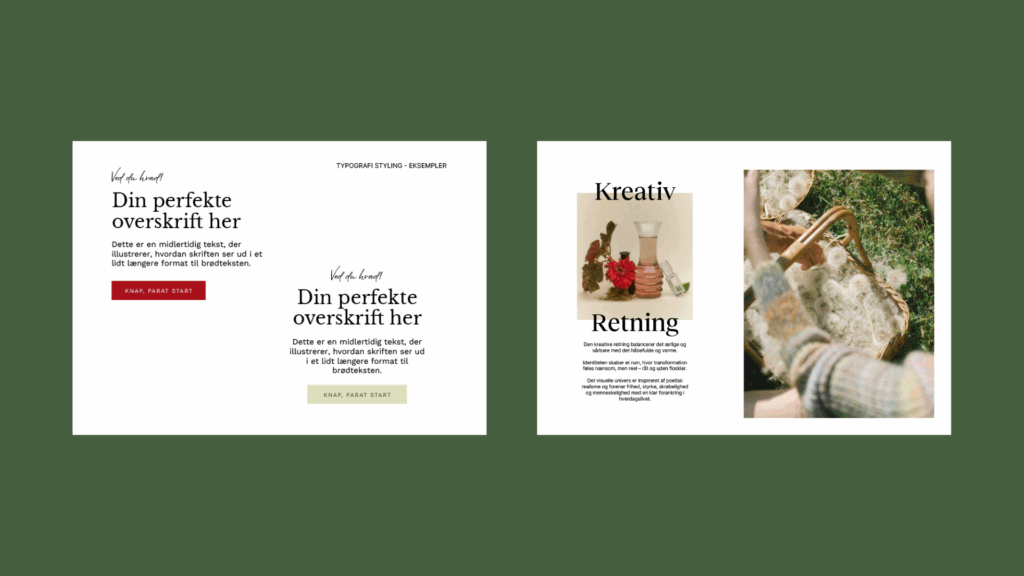 Du har mulighed for at få justeret alt fra farver, fonte m.m. så det passer bedre til dig. Der er to runder rettelser inkluderet, så vær omhyggelig med din feedback 💚
